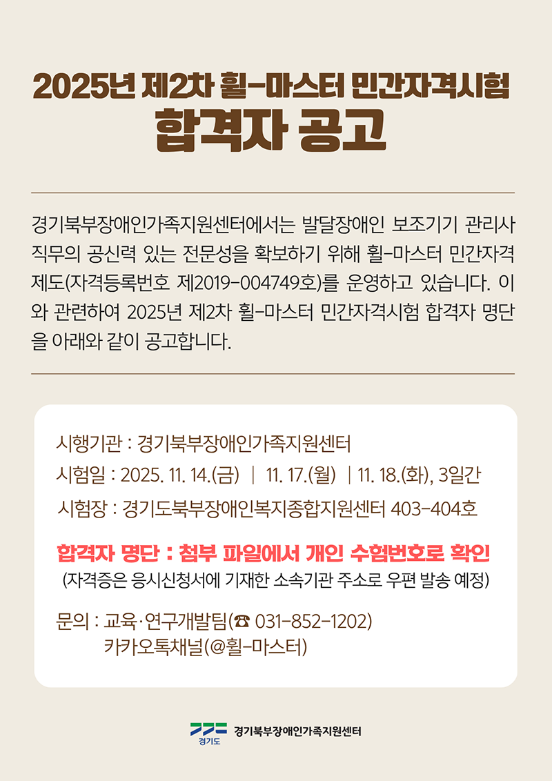 2025년 1차 휠-마스터 민간자격시험 합격자 공고