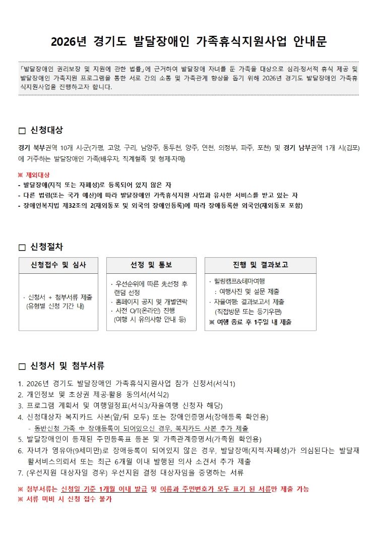 「2026년 경기도 발달장애인 가족휴식지원사업」 안내