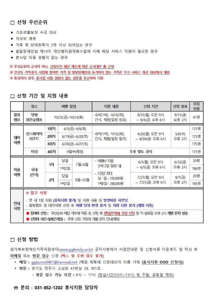 ★모집 공고★ 「2026년 경기도 발달장애인 가족휴식지원사업」 테마여행 참여자 모집