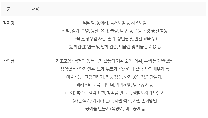전체인원의 20% 이상을 최중증장애인으로 선정하도록 하여 자해 등 과잉(도전적)행동이 있어도 주간활동을 지원받을 수 있음 (서비스 이용) * 주간활동 제공기관과 연계하여 이용자에게 체육, 미술, 음악이나 각종 취미나 여가활동 등의 특정서비스를 제공하는 사회적협동조합 등 지역사회 협력기관