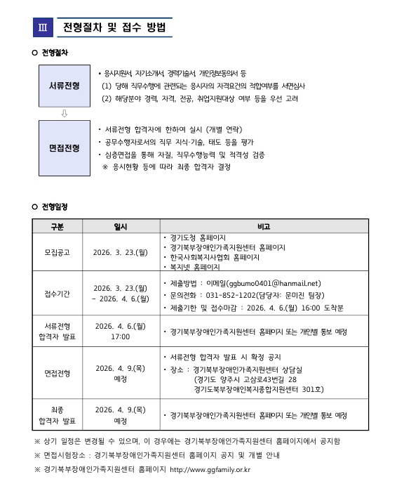 [채용공고] 2026년 1, 2차 경기북부장애인가족지원센터 발달지원팀(특수교사, 재활치료사) 채용 서류전형 합격자 발표